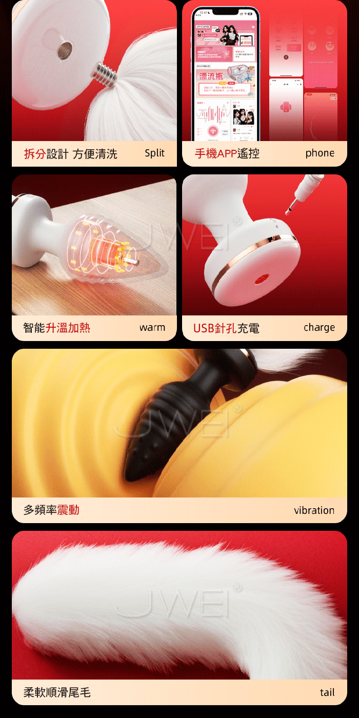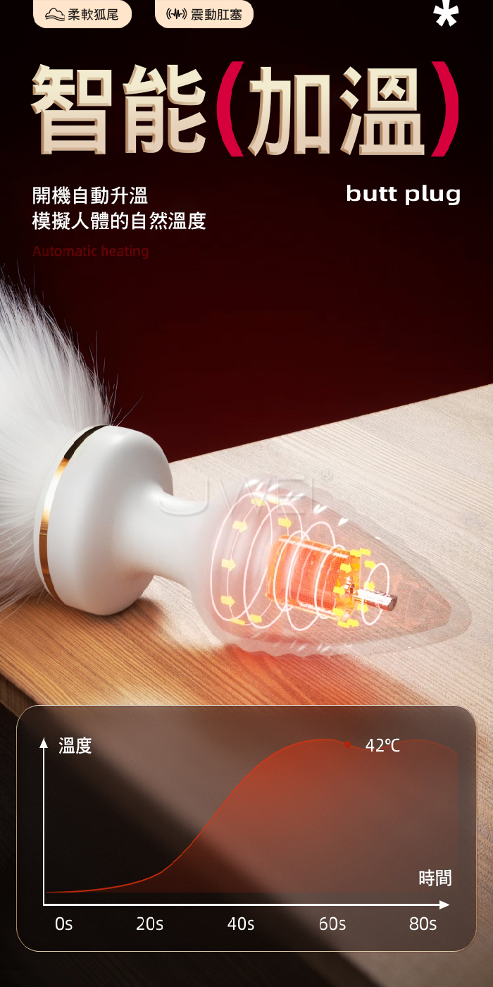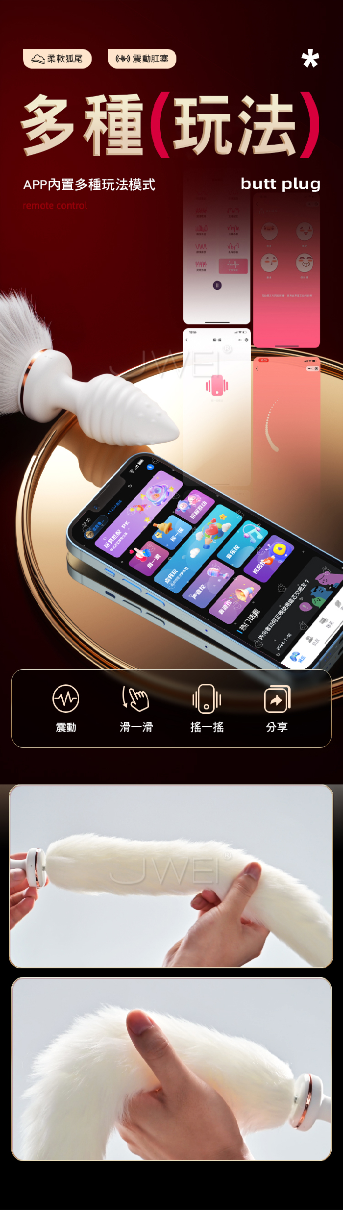 百變狐娘震動狐尾肛塞,體驗另類性愛 增進情趣~ 十頻震動肛塞,震動調情柔順尾毛 APP内置多種玩法模式,遠端調情 ■尺寸:大小詳如圖片標示 ■材質:矽膠+ABS ■功能:10頻震動、加溫