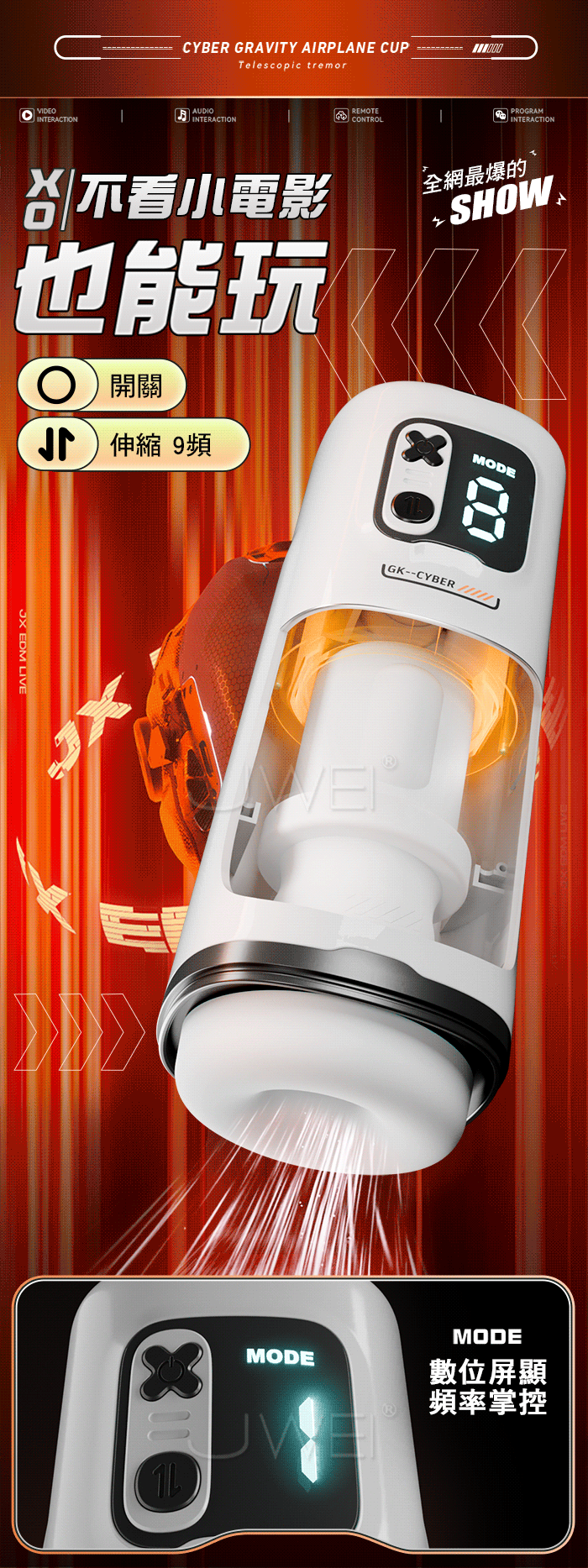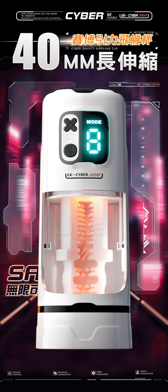 賽博引力飛機杯,40MM長距伸縮,創新黑科技,功能集結注定不凡! 不看小電影,也能玩!開關/10頻震動 伸縮10頻,自動夾吸 收縮包裹從頭擼到根~ 强勁鍛錬 提升戰力,鍛錬敏感度 提升海綿體,漩渦虹吸肌是,每一秒都不一樣 產品規格 ■材質: 矽膠+ABS ■規格: 詳如圖片標示 ■功能: 9頻伸縮、APP智控