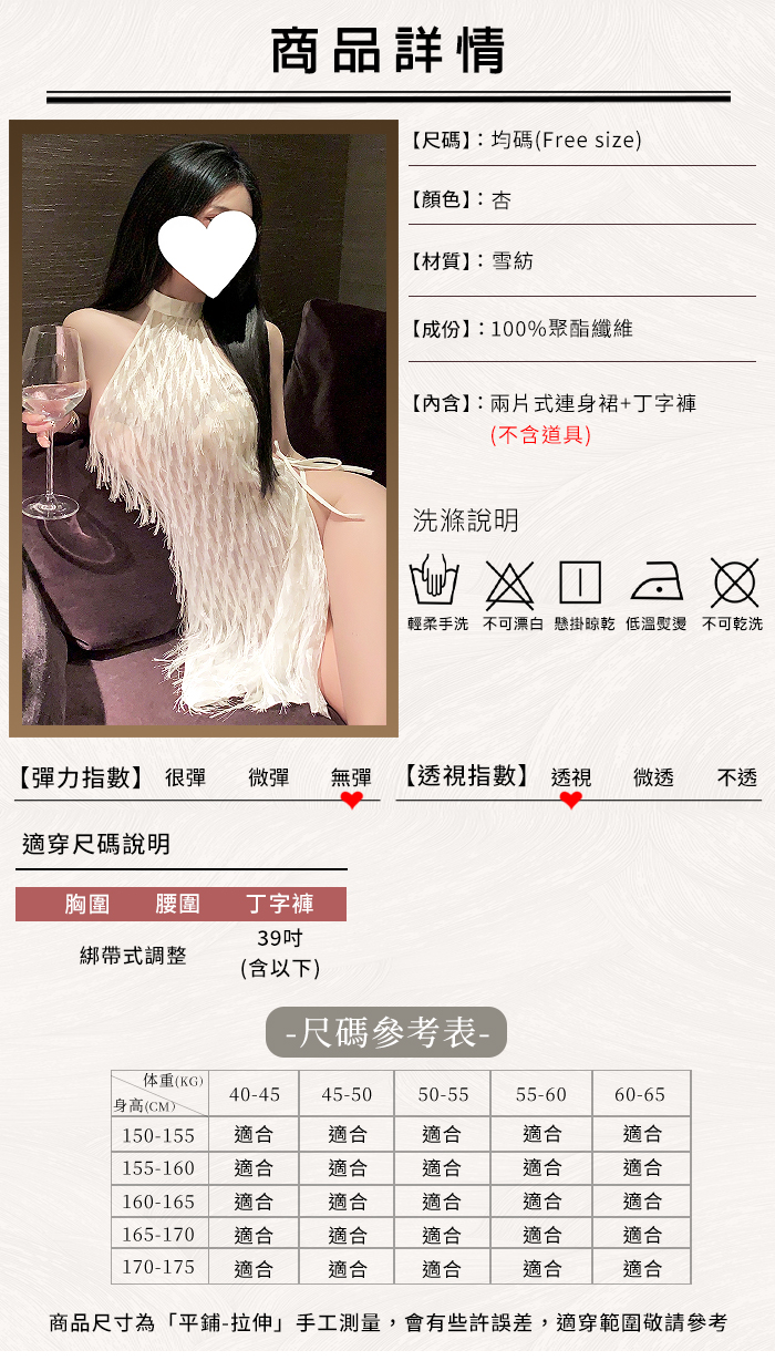 情趣夜店派對服!削肩綁脖耀眼流蘇裸背側開衩性感連身裙兩件組﹝杏﹞