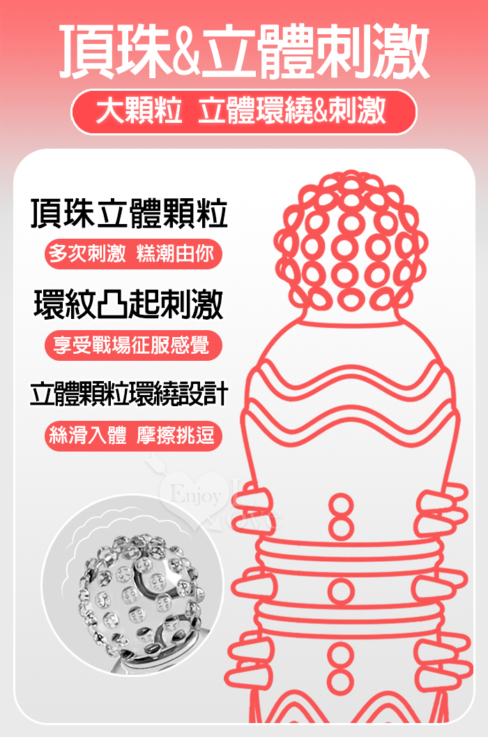 取悅 ‧ 帽刺弱刺加長加強套-頂珠+狼牙2件組﹝搭配保險套來加強使用﹞