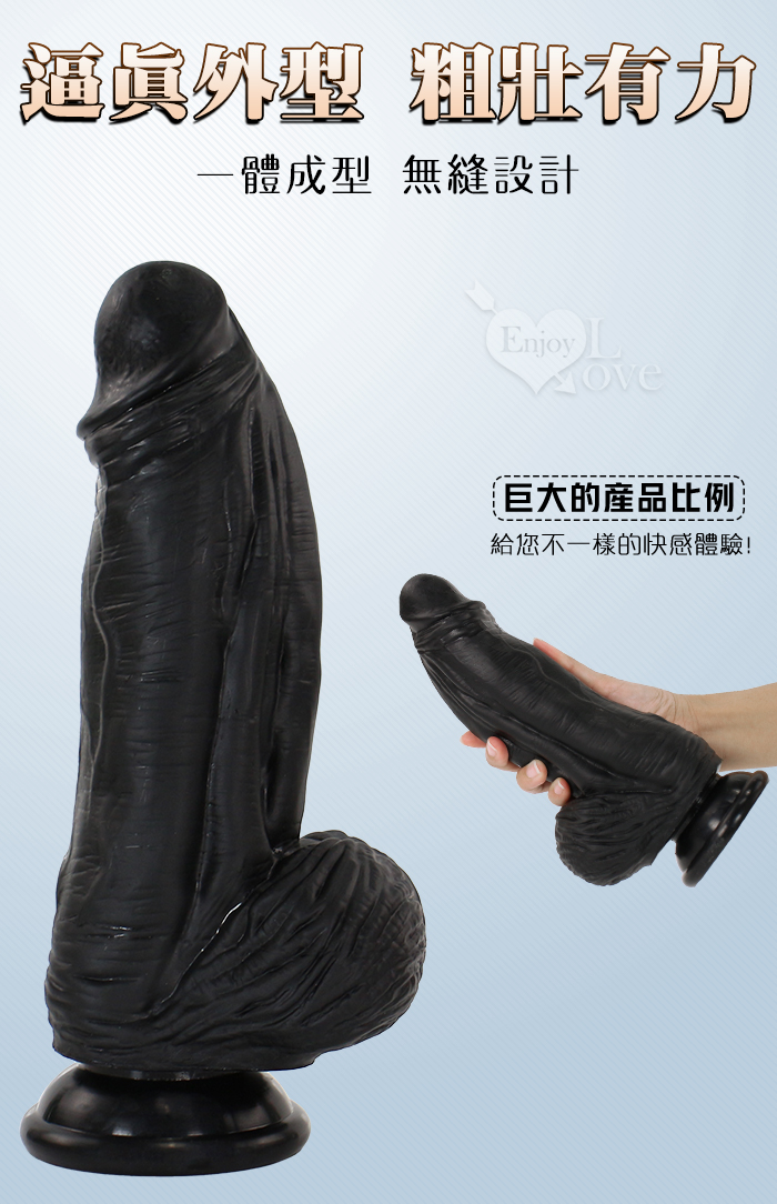 Eagle 鷹雕~特大號雙層液態矽膠吸盤式逼真粗壯按摩棒-10吋/直徑6.5公分﹝黑色﹞