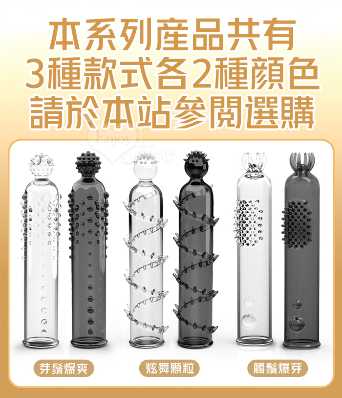 取悅 ‧ 觸鬚爆芽狼牙加強套-59個密集顆粒刺激G點~槍槍爆擊﹝透明黑﹞