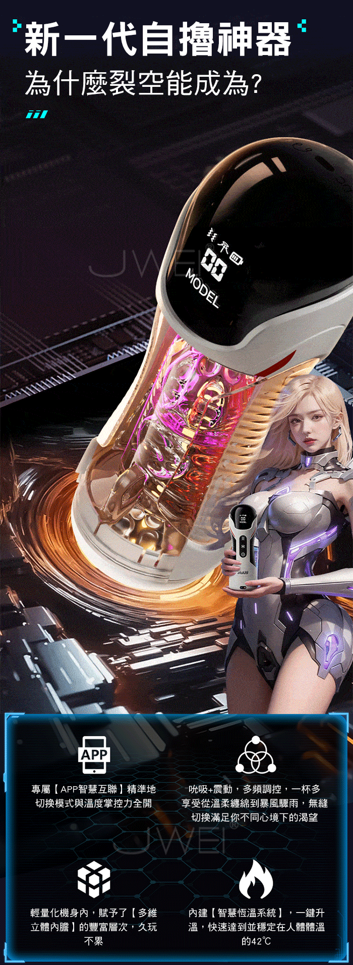 | 烈空者.8段夾吸+8段爆震 深穴吞吐榨汁 加溫抑菌APP智控自擼飛機杯